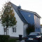 Die Räumlichkeiten im Erdgeschoss und Obergeschoss wurden neu geordnet und umgestaltet. Das ehemalige Wohnzimmer wurde zu einer großzügigen Küche mit Essbereich umgewandelt, die zum Garten hin ausgerichtet ist. Aus der Küche entstand eine Loungezone mit einem Grundofen. Die neuen Sichtachsen verleihen den Räumen eine offene Atmosphäre mit besonderen Farbakzenten. Im Rahmen dieser Neugestaltung wurde auch die Gebäudehülle saniert. Das Dach wurde neu eingedeckt und mit einer Aufsparrendämmung versehen, und die Fassade erhielt einen neuen Anstrich. Zudem wurden Teile des Außenbereichs an das neue Gestaltungskonzept angepasst.