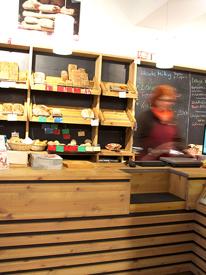 Inmitten der Calenberger Neustadt wurde mit bescheidenen Mitteln ein kleiner feiner Bioladen mit Imbiss geschaffen. Ein charaktervolles Regalsystem verleiht dem Geschäft eine einzigartige Note und setzt es von herkömmlichen Lebensmittelgeschäften ab. Durch eine gute und gezielte Beleuchtung der Produkte wurde eine angenehme Atmosphäre geschaffen, die zum Verweilen einlädt.