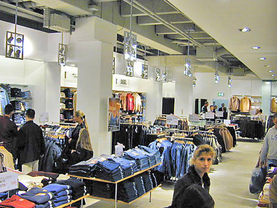Für das Wormland-Label "Theo" wurde ein spezielles Shopkonzept für Einkaufszentren entwickelt und an verschiedenen Standorten umgesetzt. Ein herausragendes Gestaltungsmerkmal dieses Ladenbaukonzepts ist das markante Deckensegel, das die Kunden in die Tiefe des Ladens führt.