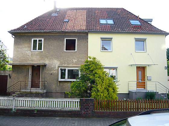 Die energetische Sanierung und der Innenausbau von zwei Doppelhaushälften in Hannover Vahrenwald erfolgte in drei Bauabschnitten. Dies umfasste die Erneuerung der Fassade und die Sanierung des Dachs, die Erneuerung der Fenster, die Neugestaltung der Bäder sowie die Erneuerung der Heizungsanlage einschließlich Solarthermie. Zusätzlich wurde das Dachgeschoss einer der Hälften ausgebaut. Ein Rückblick in die Vergangenheit mit einer Vorher-Nachher-Betrachtung zeigt die beeindruckenden Veränderungen.