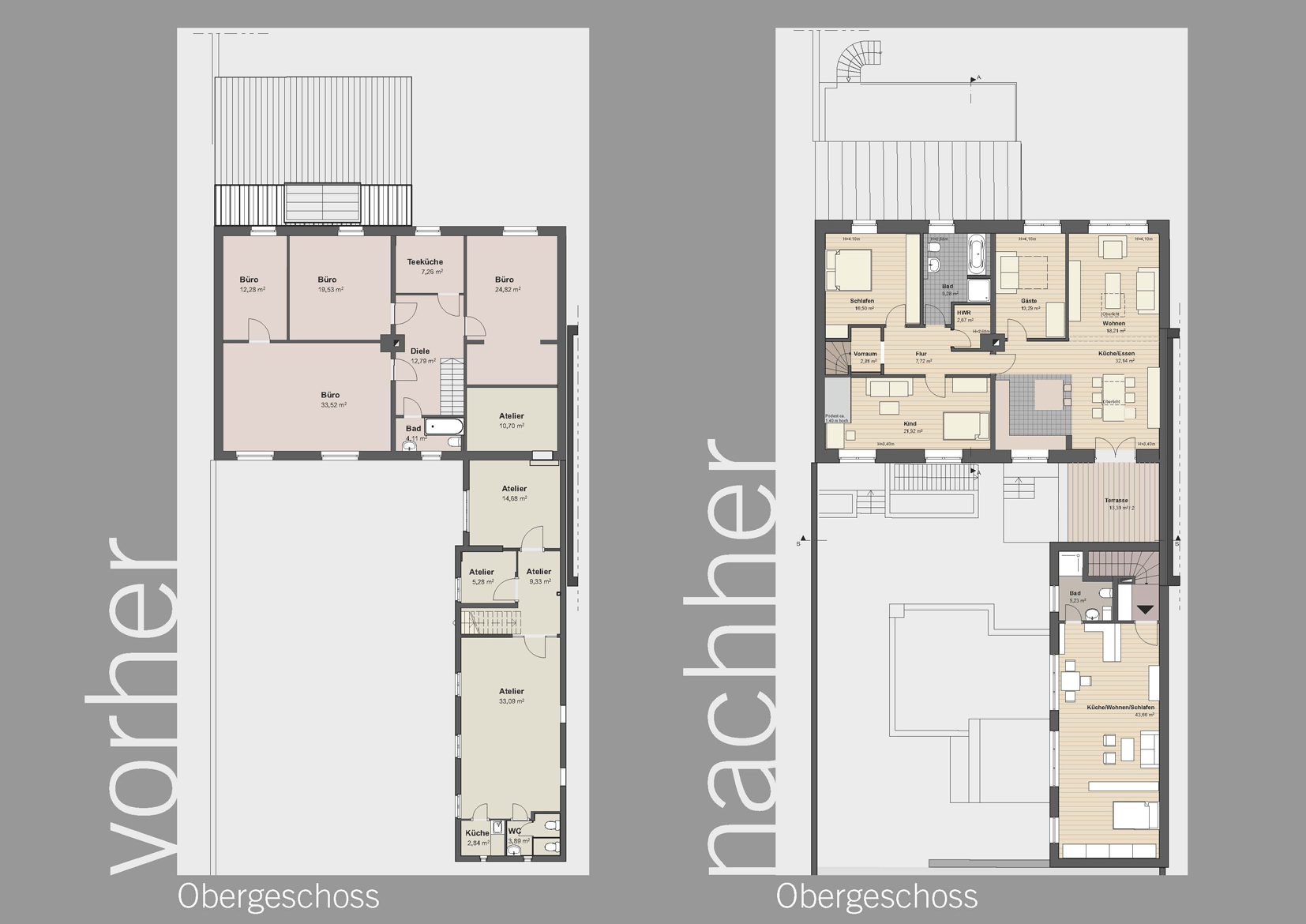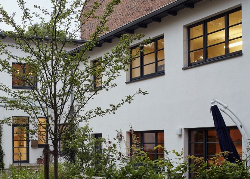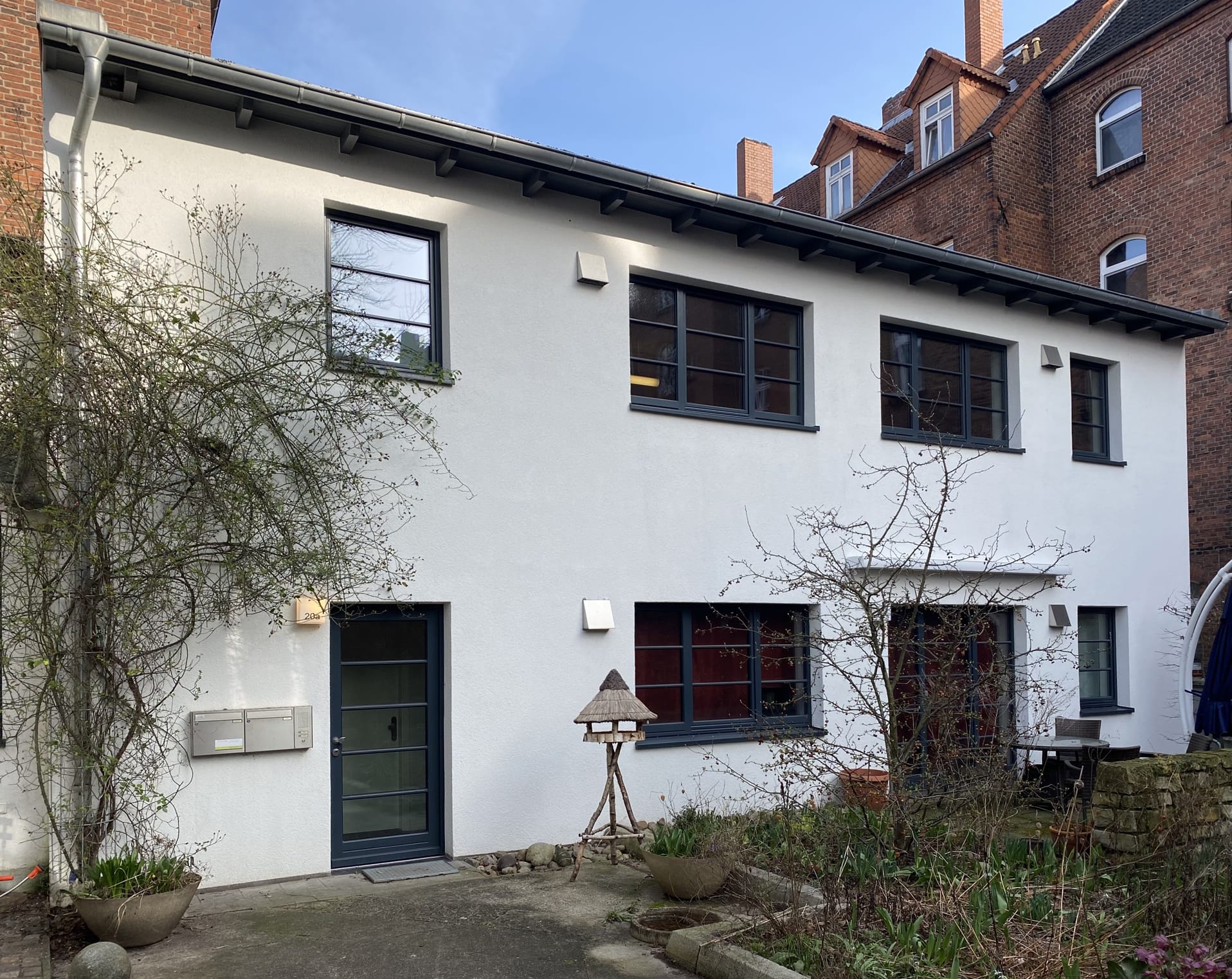 Nach einer umfassenden Sanierung wurde das kleine Hinterhaus neu gestaltet, wobei die ehemaligen Lager- und Werkstatträume in zwei kleine Loftapartments umgebaut wurden. Das Gebäude wurde nahezu vollständig abgerissen und anschließend energetisch auf den neuesten Stand gebracht. Dabei wurden ein neuer Zugang geschaffen, die Fenster neu angeordnet, das Dach erneuert und die gesamte Haustechnik modernisiert.